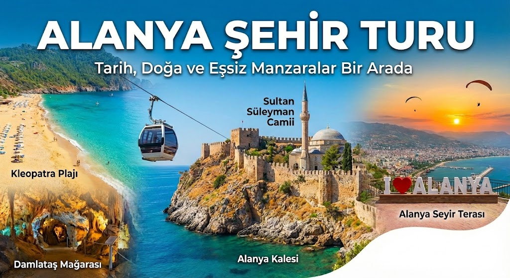 Alanya Şehir Turu, Akdeniz’in en popüler tatil destinasyonlarından biri olan Alanya’yı yakından tanımak isteyen misafirler için özel olarak hazırlanmıştır. Tarihi yapılar, doğal güzellikler ve panoramik manzaralar eşliğinde Alanya’nın en önemli noktalarını keşfetme fırsatı sunar.